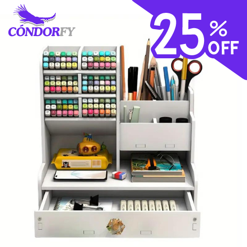 Caracteristicas:- Múltiples compartimentos pequeños para lápices, bolígrafos, grapadoras, notas adhesivas, etc.- Un cajón deslizable para artículos pequeños como alfileres, clips, anillos. Podrá encontrar fácilmente sus accesorios personales, ya no se preocupe por perder cosas.- Dígale adiós a su escritorio, la mejor opción para la oficina en casa, le proporciona un entorno ordenado y ahorra espacio.- Un buen regalo para su colega o amigos.